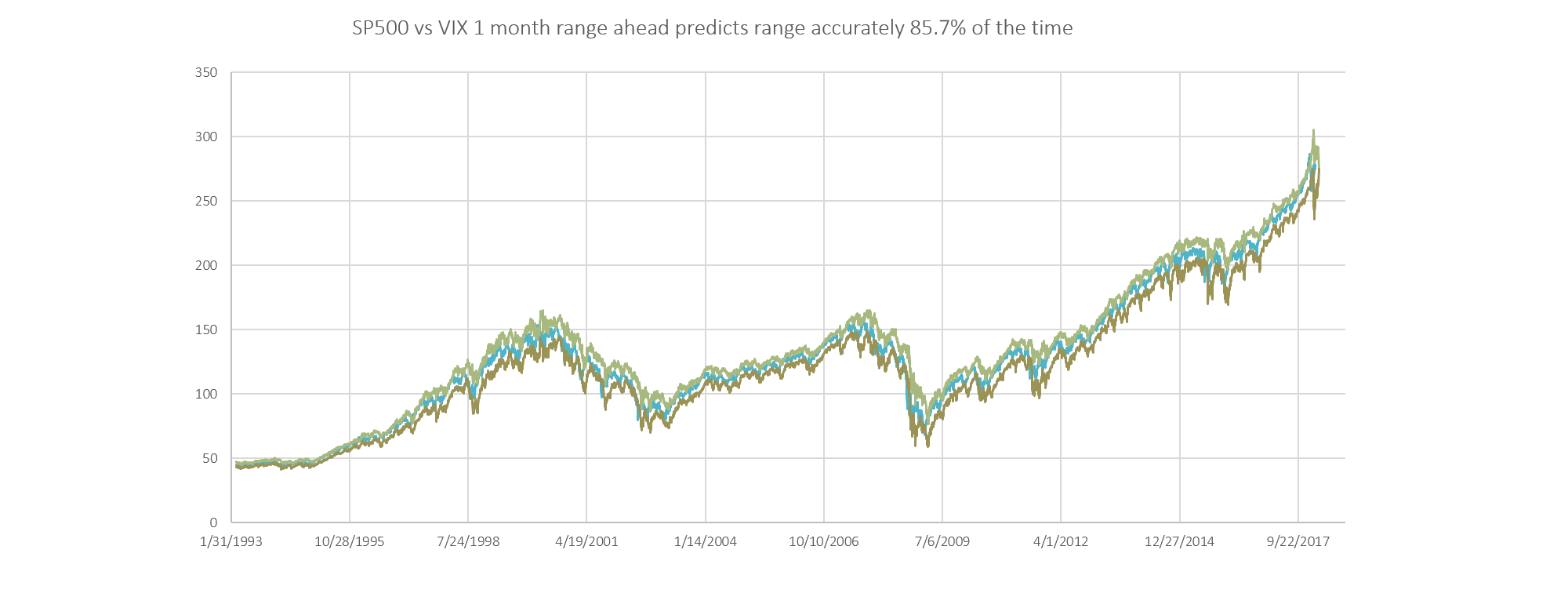 We can see that on a day-to-day basis the VIX gives us a good idea of what range the market is going to trade in over the course of the next month.