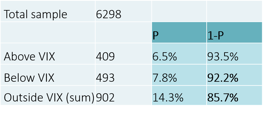 . We can see that in the next month there is a 92.2% chance it will not move below the VIX range for the US SP500 market. Exceptions to this rule are financial crashes and black swans.